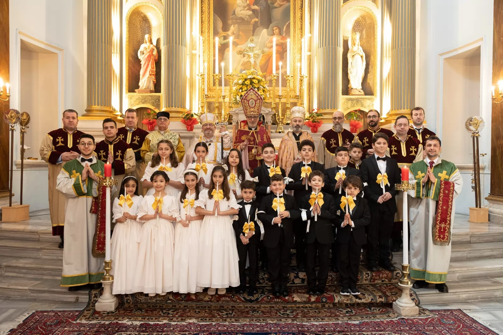 Կիրակի, 16 Ապրիլին Զատկուան Նոր Կիրակիին, ժամը 10:30-ին Սաքըզաղաճը, Սուրբ Աստուածածին Աթոռանիստ եկեղեցւոյ մէջ, Արհի. Տ. Լեւոն Արք. Զէքիեանի հովանաւորութեամբ, Գերյ. Հ. Աբրահամ Ծ. Վրդ. Ֆըրաթեանի կողմէն Ս. Պատարագ մատուցուեցաւ: Սուրբ Պատարագին մասնակցեցաւ Գերյ. Հ. Վարդան Ծ. Վրդ. Գազանճեան եւ Տէր Յակոբ Աւագ սարկաւագ Մինասեան։ Ներկայ էին Հայ Կաթողիկէ Առաջնորդարանի նորընտիր հոգաբարձութեան ատենապետը՝ Պրն Ենալ Գրիգոր Սուճի եւ պատուարժան անդամները։ Պատարագի ընթացքին Գերապայծառ Տէրը 15 մանուկներու Առաջին Հանդիսաւոր Սուրբ Հաղորդութիւնը տուաւ: Եկեղեցին լեցուցած էին պատանիներու ծնողները, ընտանիքներն ու բարեկամները։ Սուրբ Պատարագի աւարտին Արհի. Գերապայծառ Տէրը յիշատակի նուէրներ բաժնեց Սուրբ Խորհուրդը ընդունողներուն ապա Առաջնիորդարանի Աղաճանեան սրահին մէջ հիւրասիրութիւն մը տեղի ունեցաւ: