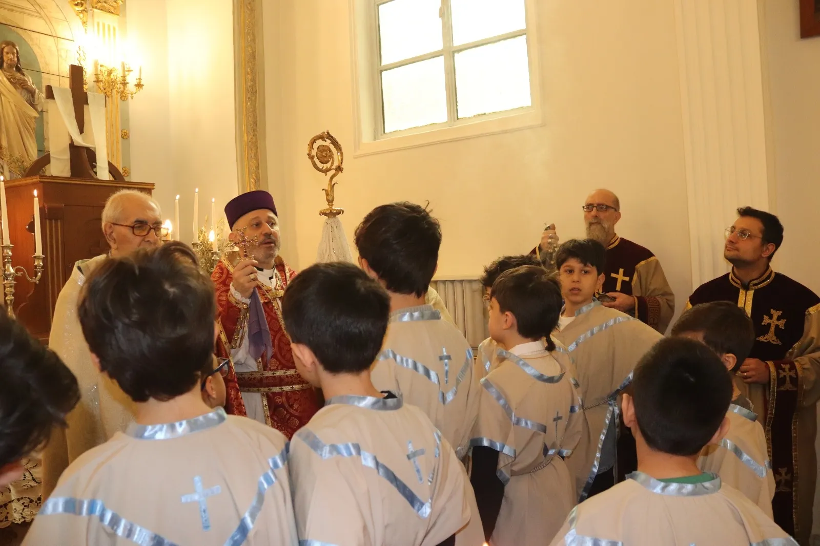 Kerabaydzar Der vaazında, çocuklara sorular sordu ve iyi öğrendikleri cevaplarını tebrik etti.