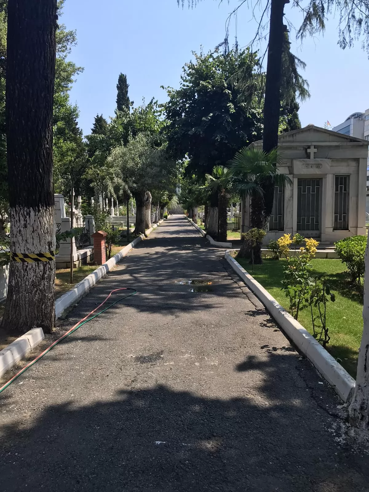 1560’dan itibaren defin işlemleri Taksim, Harbiye ve Pangaltı semtlerinde bulunan ıssız topraklar üzerinde gerçekleşmekteydi. Aynı semtlerde nüfus sayısı arttıktan sonra 1865’ten itibaren Şişli semtinin sınırlarına doğru Rumlara ve Ermenilere mezarlıklar kurmak için araziler verilir. Böylece Ermeni Katolik Cemaati Şişli tarafında özel bir mezarlığa sahip olur. Şu ana kadar en büyük Ermeni Katolik Mezarlığı olarak tanınır, eski mezarlıklarda bulunan anıtlar buraya taşınmıştır. Mezarlık kapısı girişinde sol tarafta bir şapel bulunur. Bu şapelde Merelots günlerinde Kutsal Ayin sunulur. Mezarlık, farklı farklı kare kıtalara bölünmüştür ve her bir kıta bir Azizin ismiyle anılmıştır. Rahmetli Kireçyan ve Çolakyan Başepiskoposların kabirlerinin de bulunduğu Ruhanilere ait bir kıta mevcuttur. Mıhitaryan Tarikatı Rahiplerinin, Ruhanilerin ve birkaç Bzommar Tarikatı cemaatine ait vefat eden üyelerin mezarları da aynı kıtada yer alır. Anarad Hığutyun Rahibeler Tarikatı üyeleri de özel bir alana defnedilmiştir.